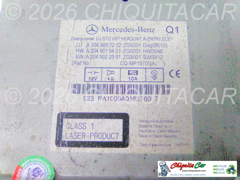 UNIDADE RADIO, CD, GPS MERCEDES Classe C (204)